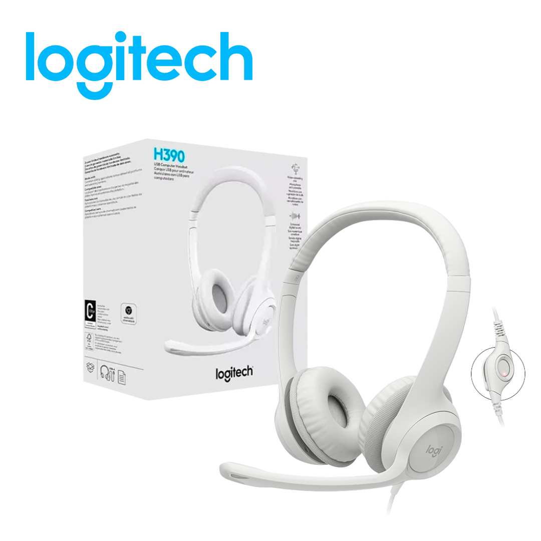 Audífono Logitech H390 con Micrófono, USB, Blanco | 981-001285