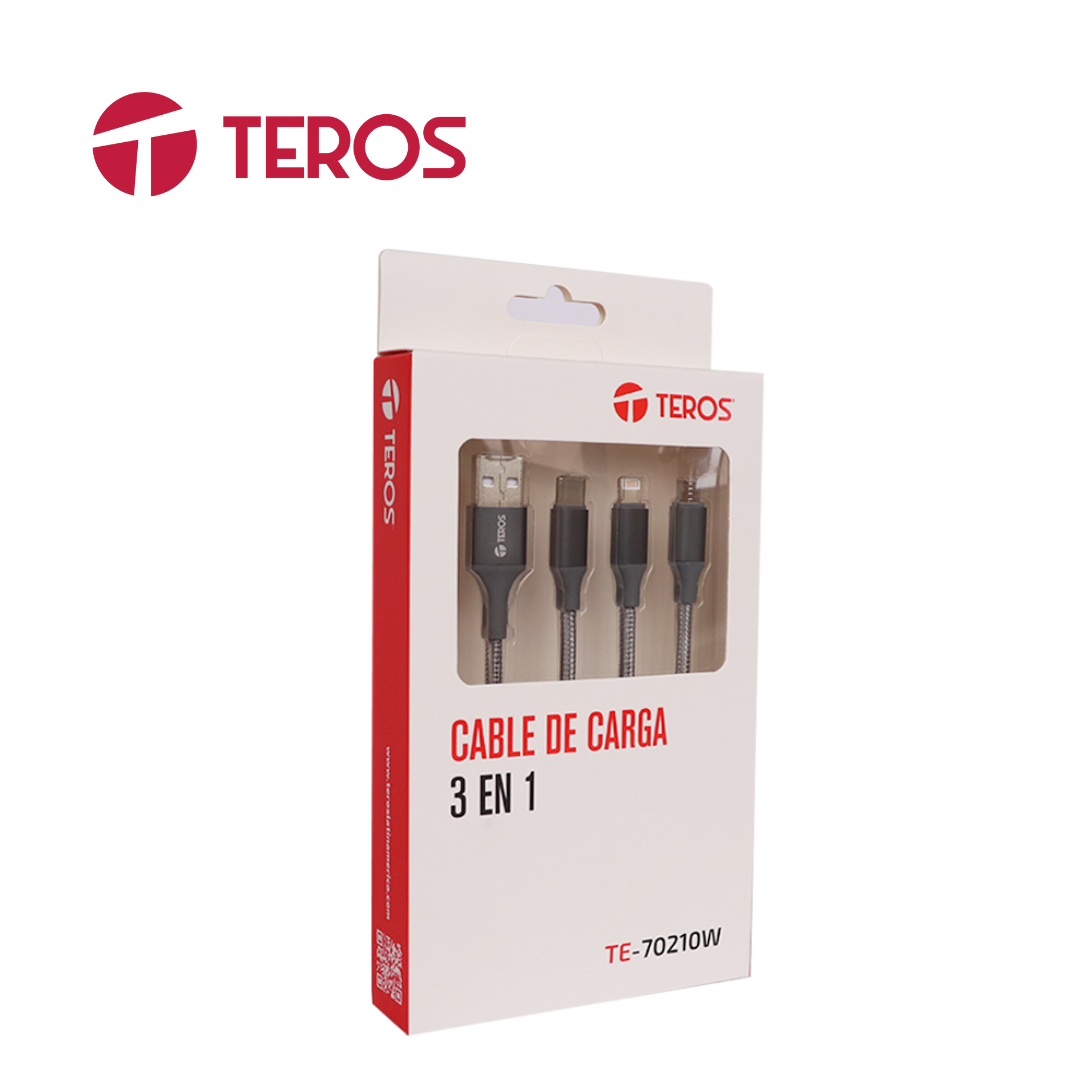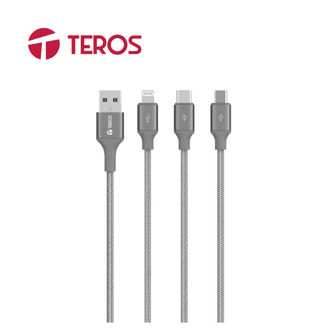 Cable USB Teros (TE-70210W), tipo A a tipo C/Lightning/Micro USB, 3,5 A, 17,5 W máx., Gris | TE-70210W
