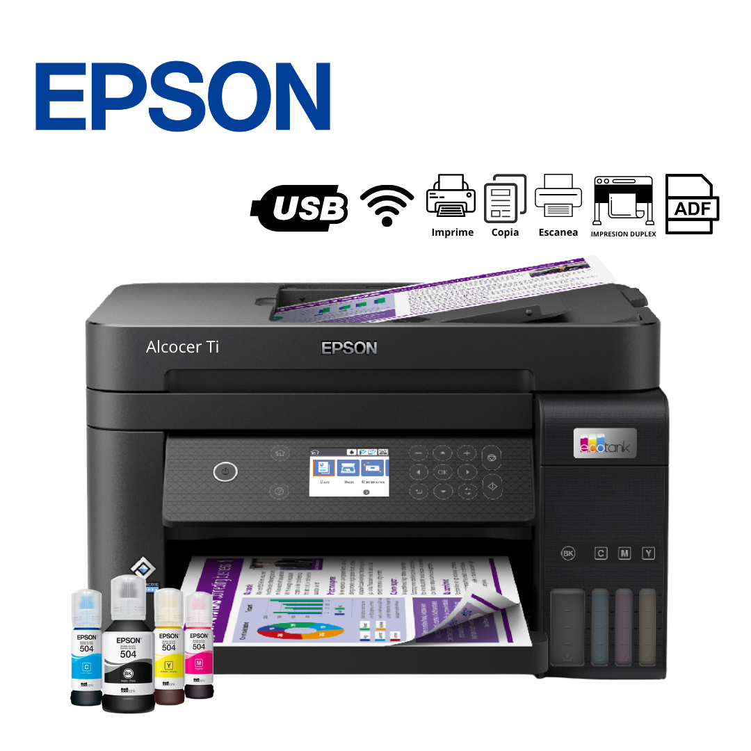 Impresora Multifuncional Epson EcoTank® L6270 (220V) C11CJ61303 Botella de tinta Negra T504120-AL Botella de tinta Cian T504220-AL
