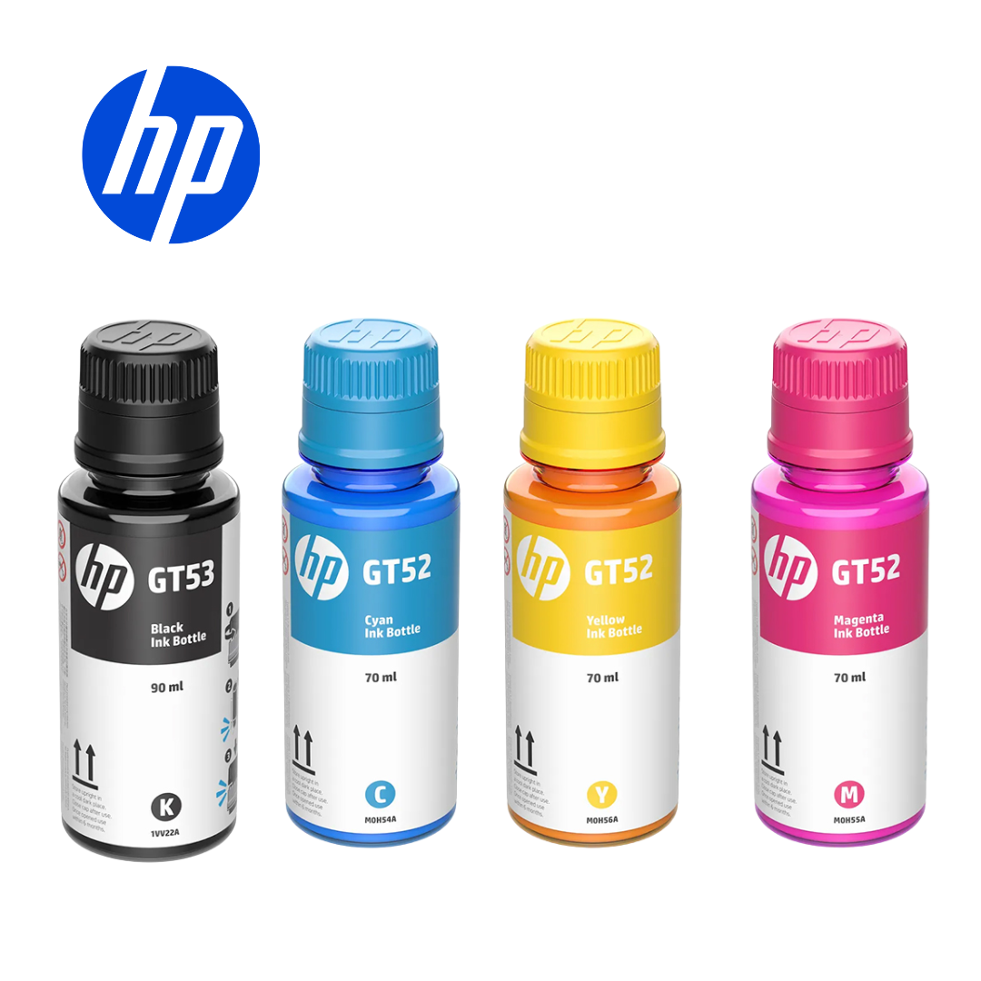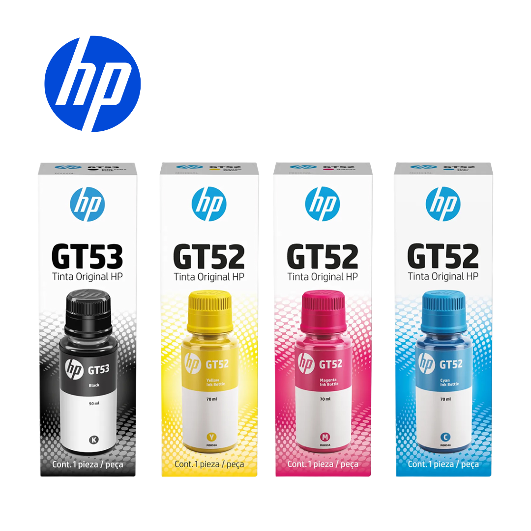 Pack de 4 Botellas de Tinta HP GT53/GT52 Original, Negro/Cian/Magenta/Amarillo